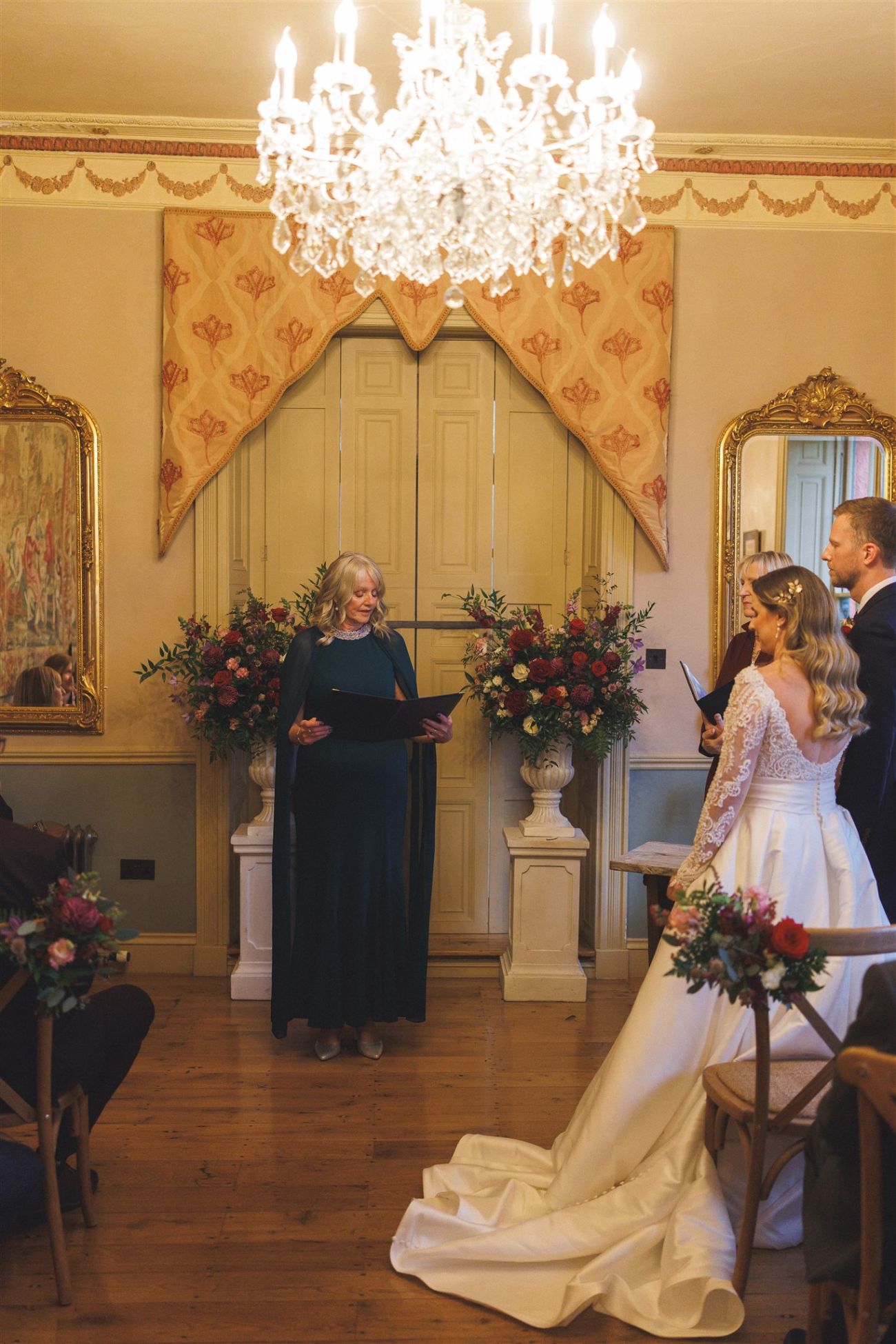 Nicole and Joe chose to marry in the Ballrom, the perfect setting with florals from Aurora Nyx floral Design