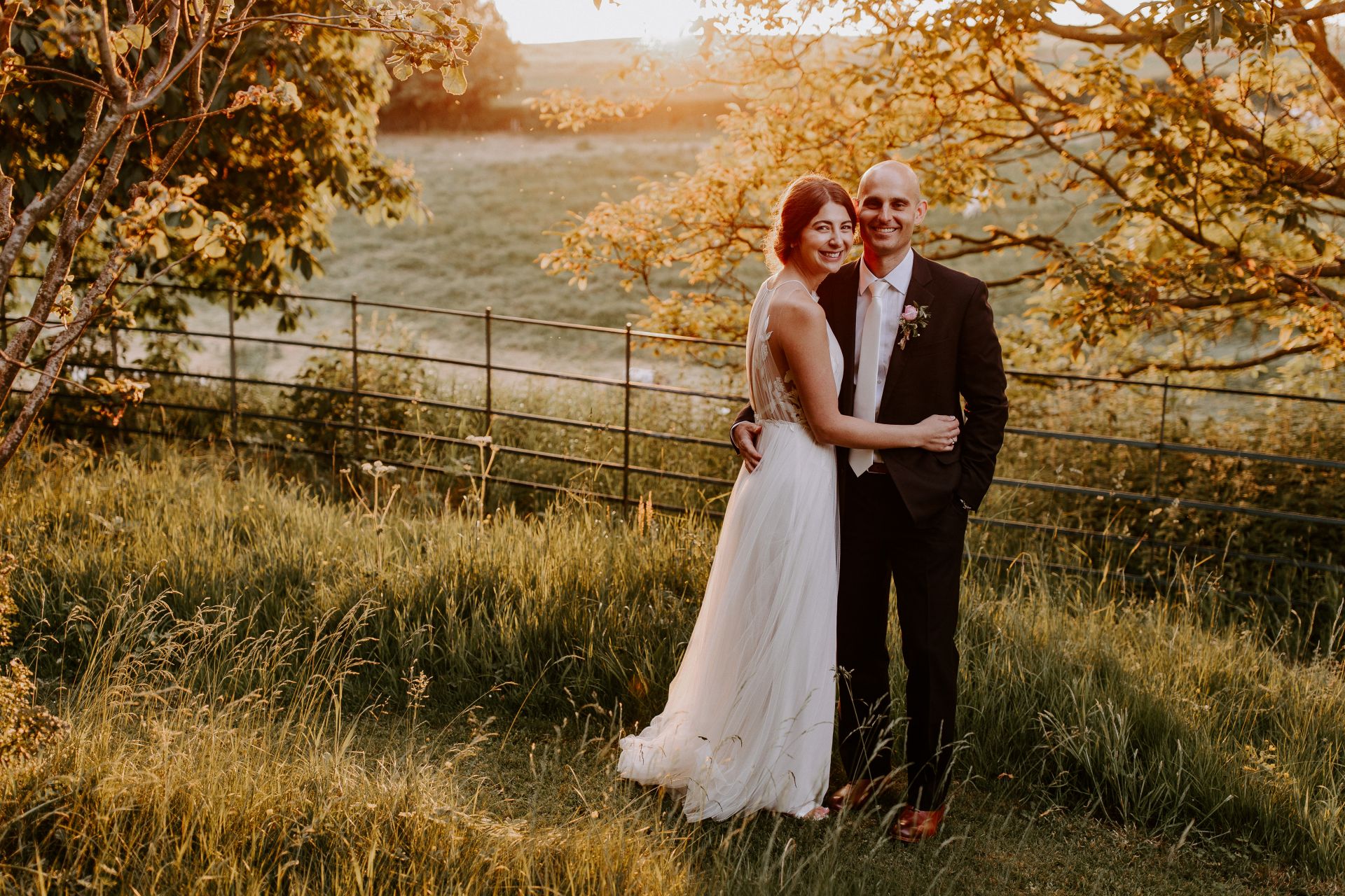 Elle and James chose to marry between the enchanting and embracing quince trees, overlooking the rolling Gloucestershire countryside. Guests enjoyed gentle, romantic classical music from Capriccio Quartet while gazing out down to the Cornmill and lake and endless countryside beyond.