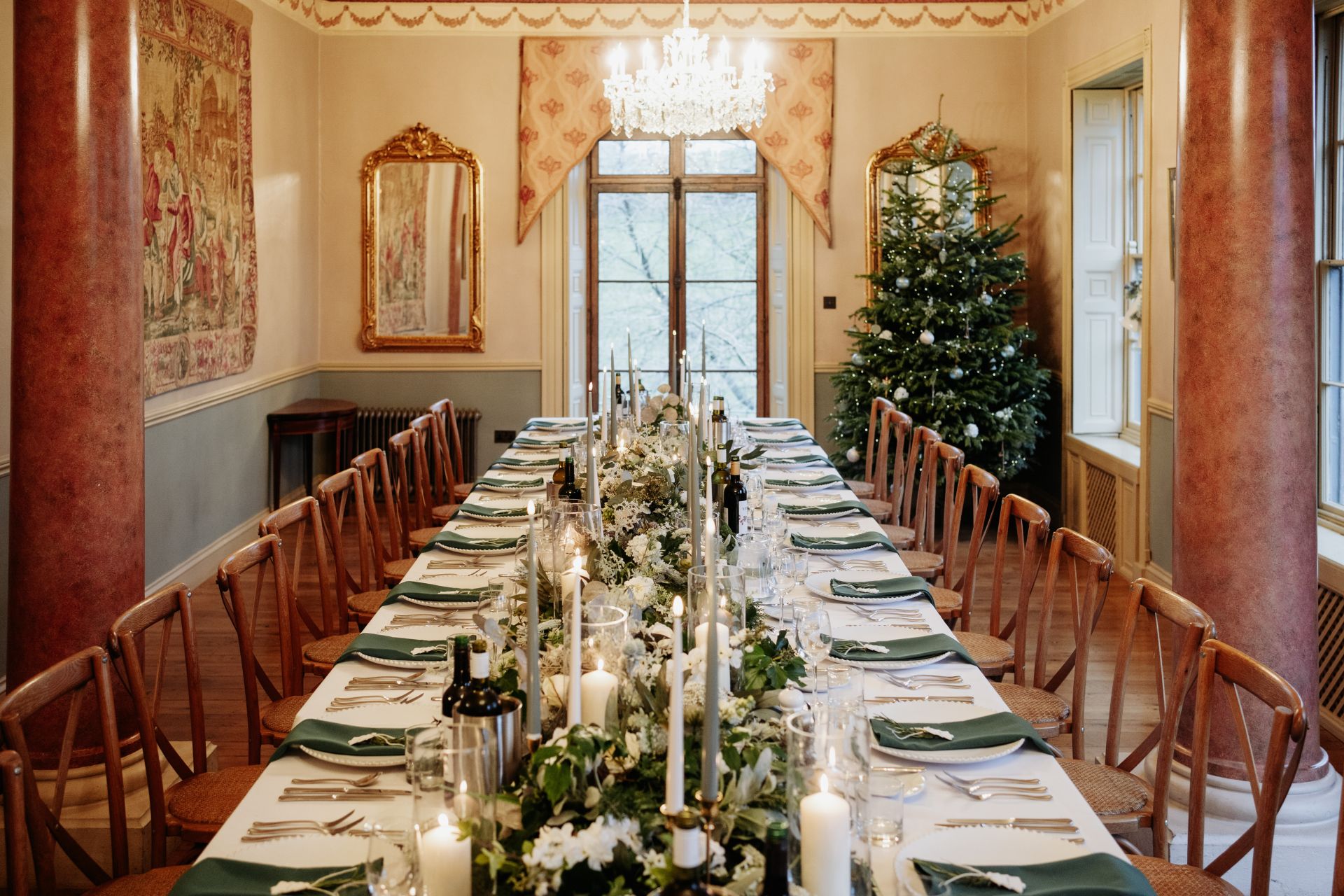 It was a beautiful and truly romantic wedding breakfast – a winter wonderland with all the added Christmas sparkles of the tree and the stunning florals and glittering chandeliers and candles!