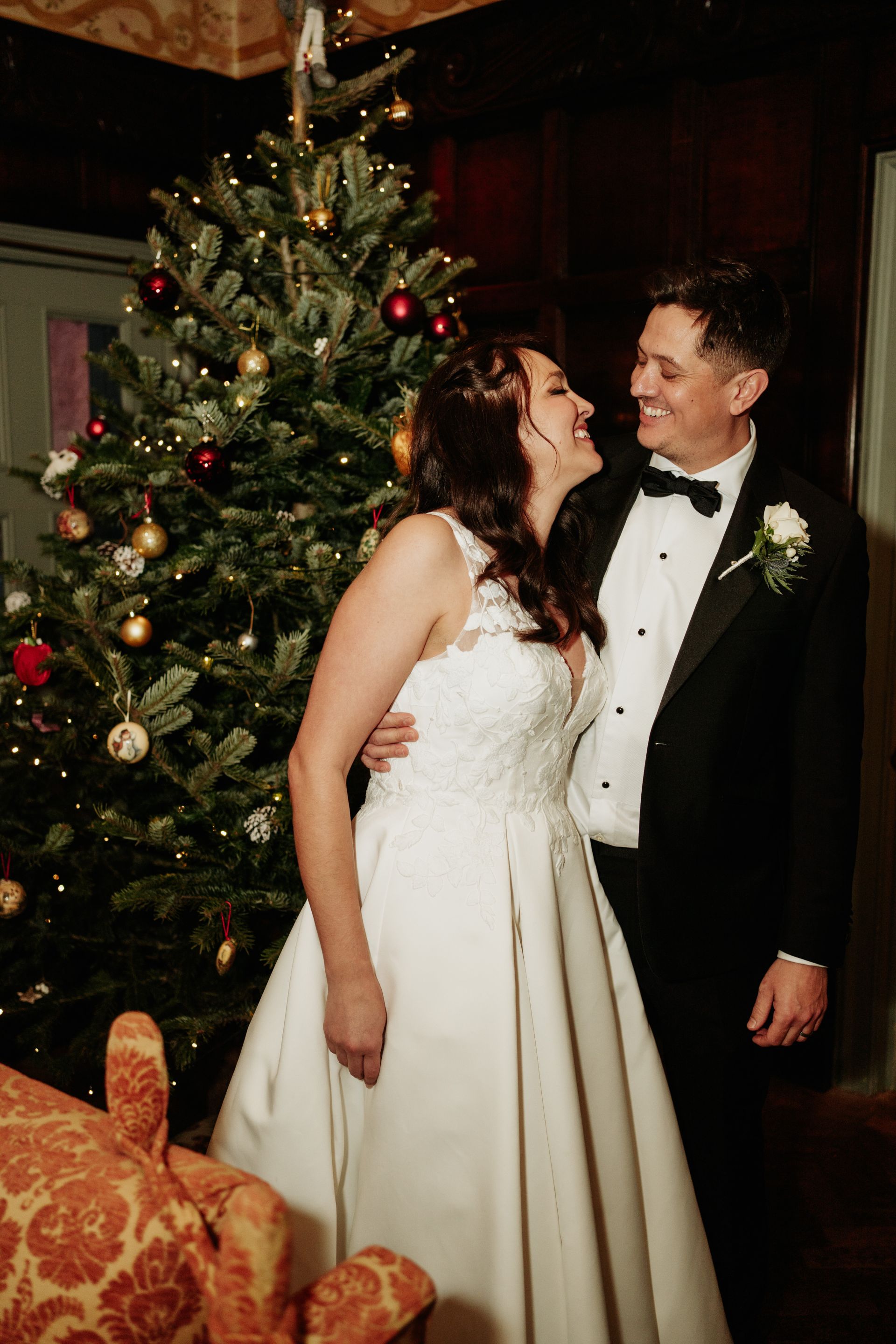 The Ballroom is the most exquisite and intimate space for the smaller wedding and the twinkling lights on the Christmas tree added to the romance of this elegant and special ceremony space.